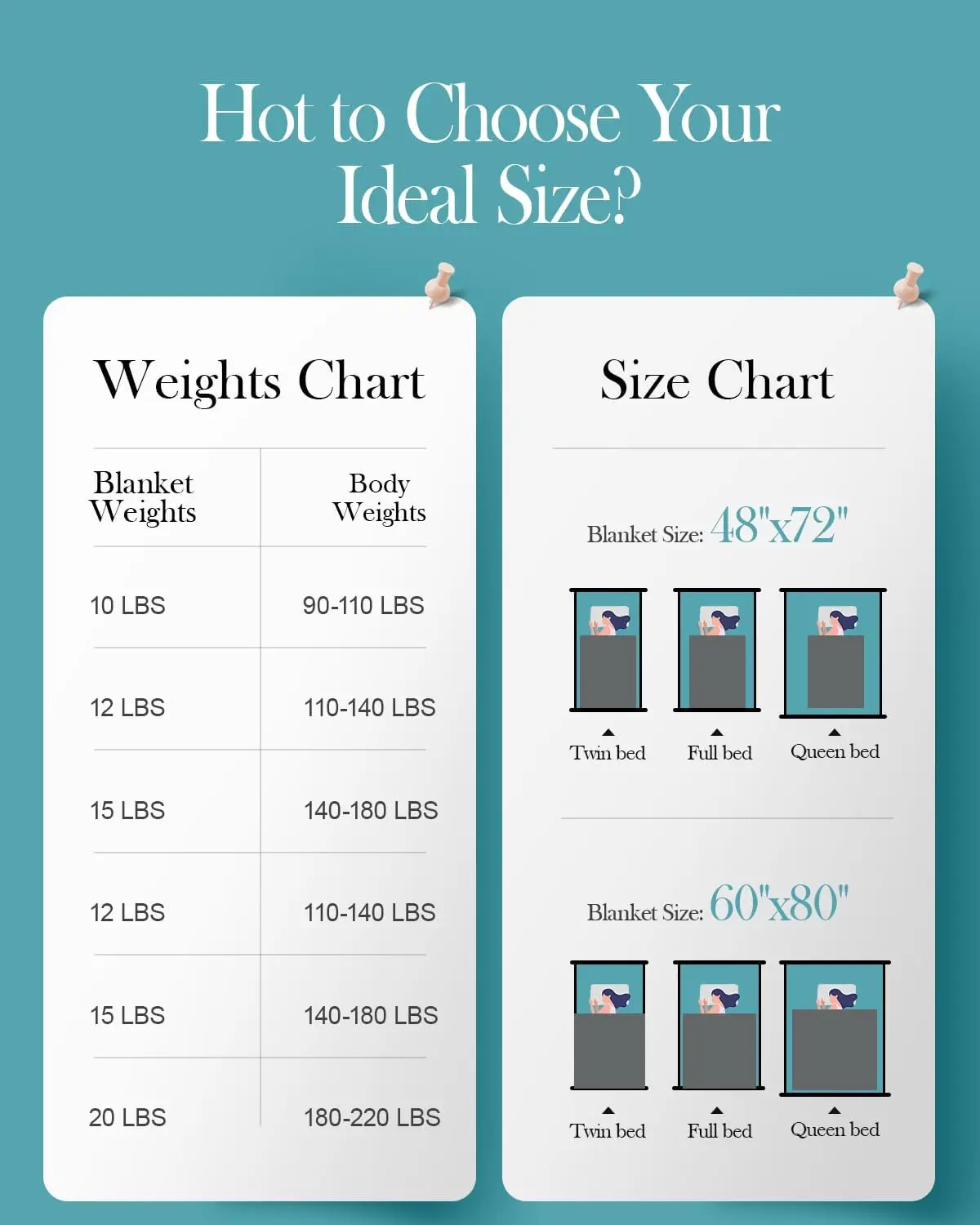 - Weighted blankets are intended for individual use and typically do not hang over the edges of the bed.